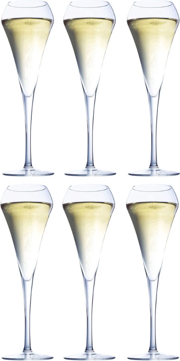 De Open Up champagneglazen van Chef & Sommelier zijn stijlvolle glazen geschikt voor champagne. De glazen worden als set van 6 stuks verkocht.