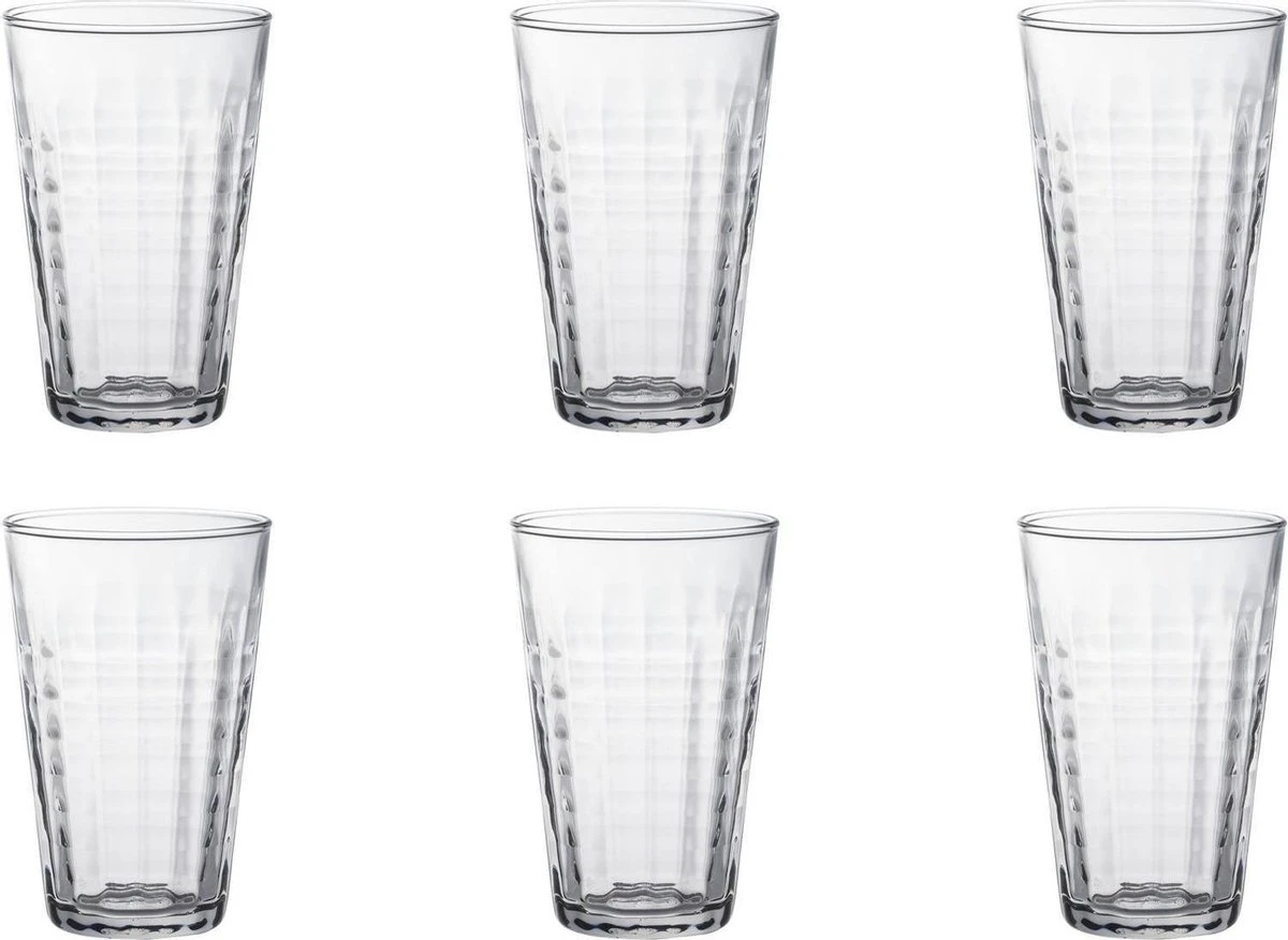 De Prisme longdrinkglazen van Duralex hebben een stoer uiterlijk. De aparte glasbewerking valt meteen op. Ook deze longdrinkglazen hebben een prachtig stijlvol design en zijn erg multifunctioneel. Deze longdrinkglazen kun je gebruiken voor het serveren van koude- en warme toepassingen, als bijvoorbeeld een espresso. De glazen zijn namelijk gemaakt van gehard glas en schokbestendig en bestand tegen thermische schommelingen. Daarnaast zijn deze tumblerglazen stapelbaar en nemen ze ook nog eens weinig ruimte in. Na gebruik kunnen deze glazen eenvoudig gereinigd worden in de vaatwasmachine. Deze set bestaat uit 6 transparante longdrinkglazen met een inhoudsmaat van 33 cl.