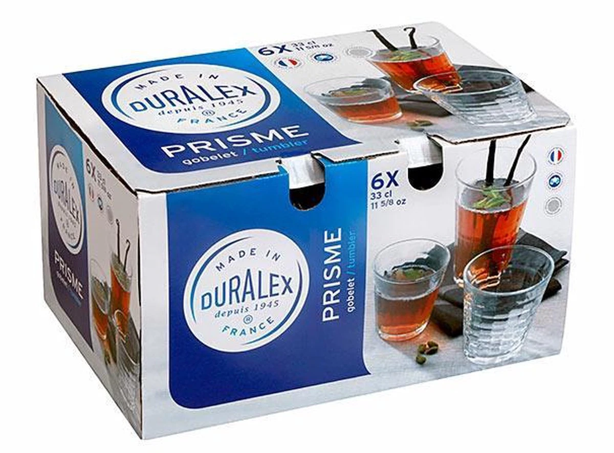 Het merk Duralex laat zich kenmerken door haar producten gemaakt van gehard glas. Gehard glas wordt op een opvallende wijze geproduceerd. Als eerst wordt het glas verhit tot een temperatuur van ongeveer 700 ℃. Na deze verhitting wordt het glas in een snel tempo gekoeld, waardoor het glas weerstand kan bieden aan thermische schokken van 130 °C tot – 20 °C. Gehard glas is 2,5 keer zo sterk dan gegloeid glas en is te vergelijken met de sterkte van een autovoorruit. Gehard glas is dus hét perfecte materiaal voor glazen, koppen en schalen. Bovendien is gehard glas zeer geschikt voor gebruik van de magnetron- en vriezer.