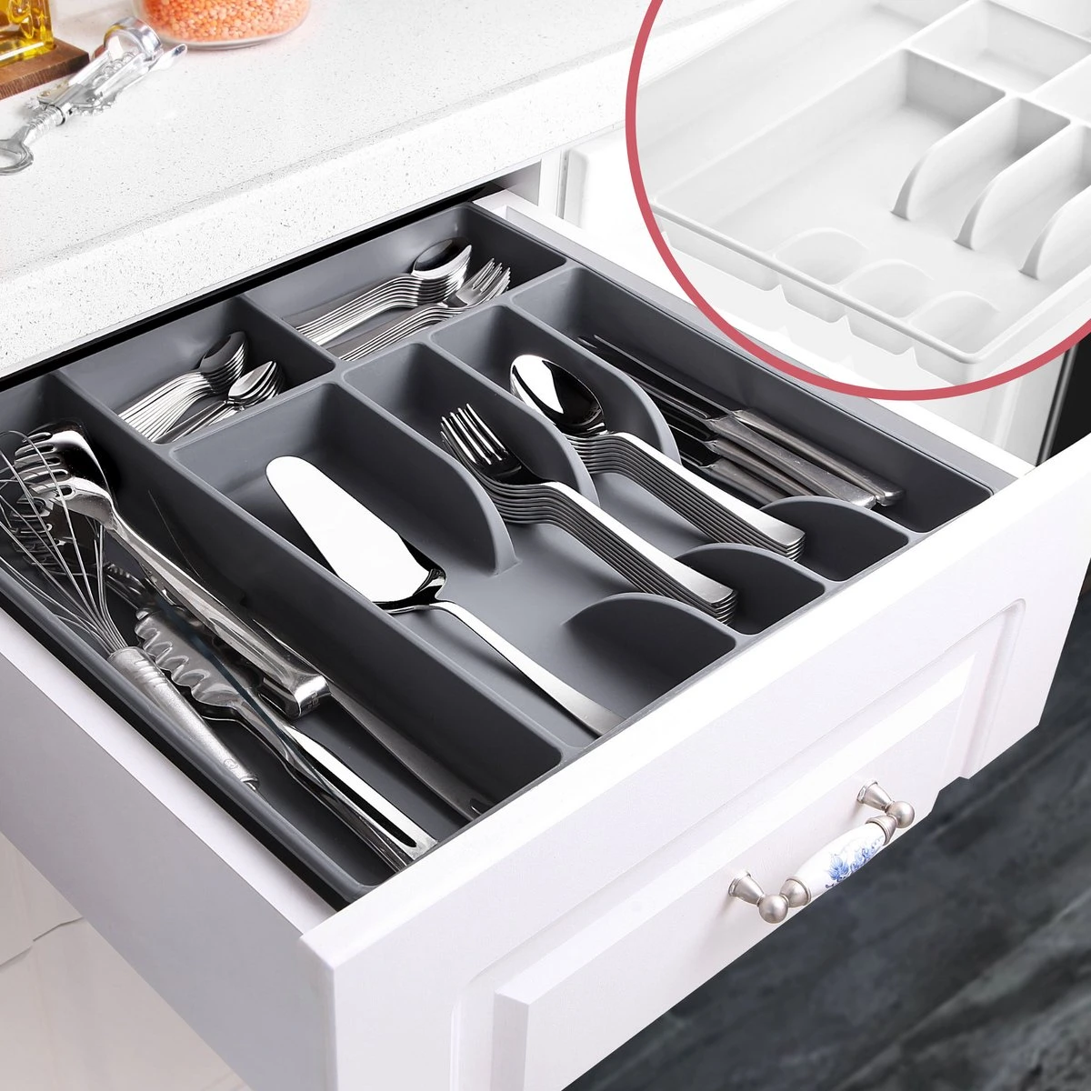 Je maakt een einde aan de rommel met het bestek in de lade, waar je al je benodigde keukenmateriaal (vorken, lepels, messen, etc.) die je dagelijks gebruikt, kunt ordenen.