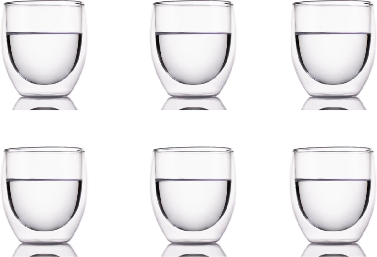 - Dubbelwandige glazen zijn van gehard glas gemaakt; ook wel borosilicaatglas genoemd.