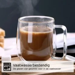 Dubbelwandige Koffieglazen Met Oor – Cappuccino Glazen – Dubbelwandige Theeglazen – 300 ML – 4 Stuks