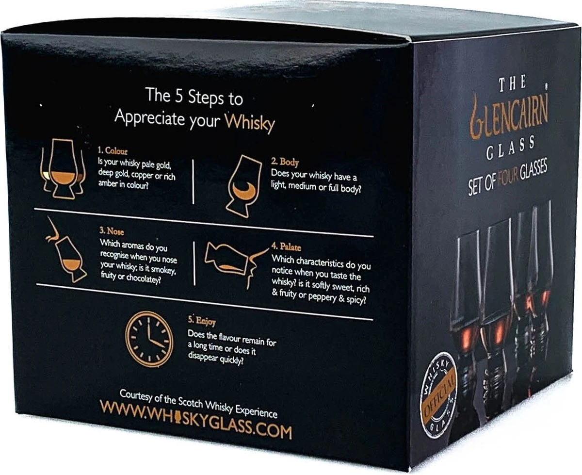 Het Glencairn Glass wordt beschouwd als DE standaard voor het genieten van whisky, ideaal voor zowel blenders als whiskyliefhebbers. De brede kristallen schaal zorgt voor de volledige waardering van de kleur van de whisky en de taps toelopende mond van het glas vangt en concentreert het aroma op de neus. De Glencairn Glass is te vinden op grote whiskyfestivals over de hele wereld en in veel serieuze whiskybars. Het glas wordt ook gebruikt in distilleerderijen over de hele wereld! Sinds de lancering in 2001 heeft het glas ook talloze prijzen gewonnen, waaronder de Queens Award for Innovation. Het heeft misschien een paar honderd jaar geduurd om aan te komen, maar whisky heeft nu een eigen glas … eindelijk! Materiaal: Loodvrij kristal