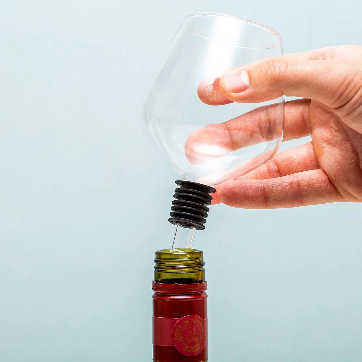 Met de Wijnfles Glas hoef je je nooit meer zorgen te maken dat je ‘te kort’ aan wijn komt in je glas en je hoeft je ook niet meer te schamen als je glas na glas inschenkt, want je hebt immers nu maar één glas wijn op! Bevestig de wijnglas op de fles en geniet van je avond!